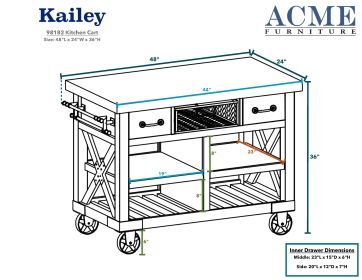 ACME Kailey Kitchen Cart, Antique Oak 98182